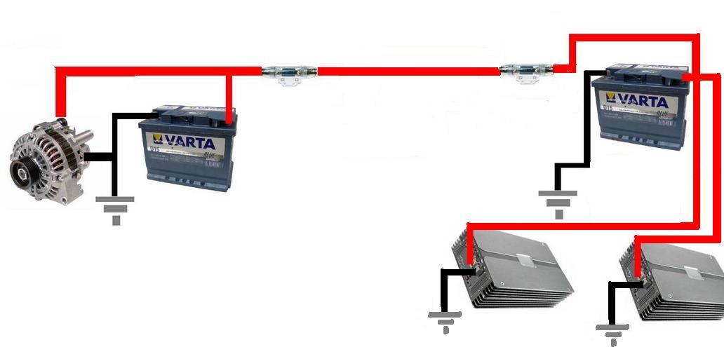 a 2-a siguranta se pune dupa a 2-a baterie , inainte de amplificatoare