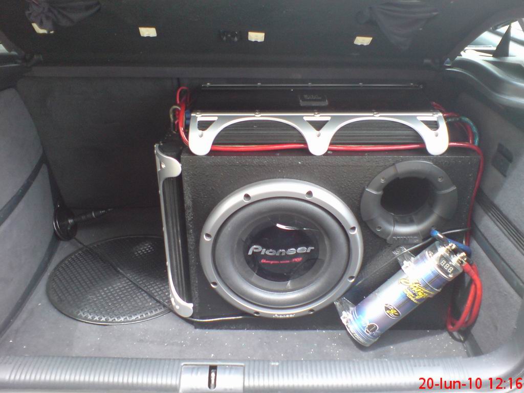 incinta e acordata la 32hz cu tub de pvc de ~10cm in diametru... cam se aude aerul prin port din cauza imbinarilor, dar in masina e insesizabil.