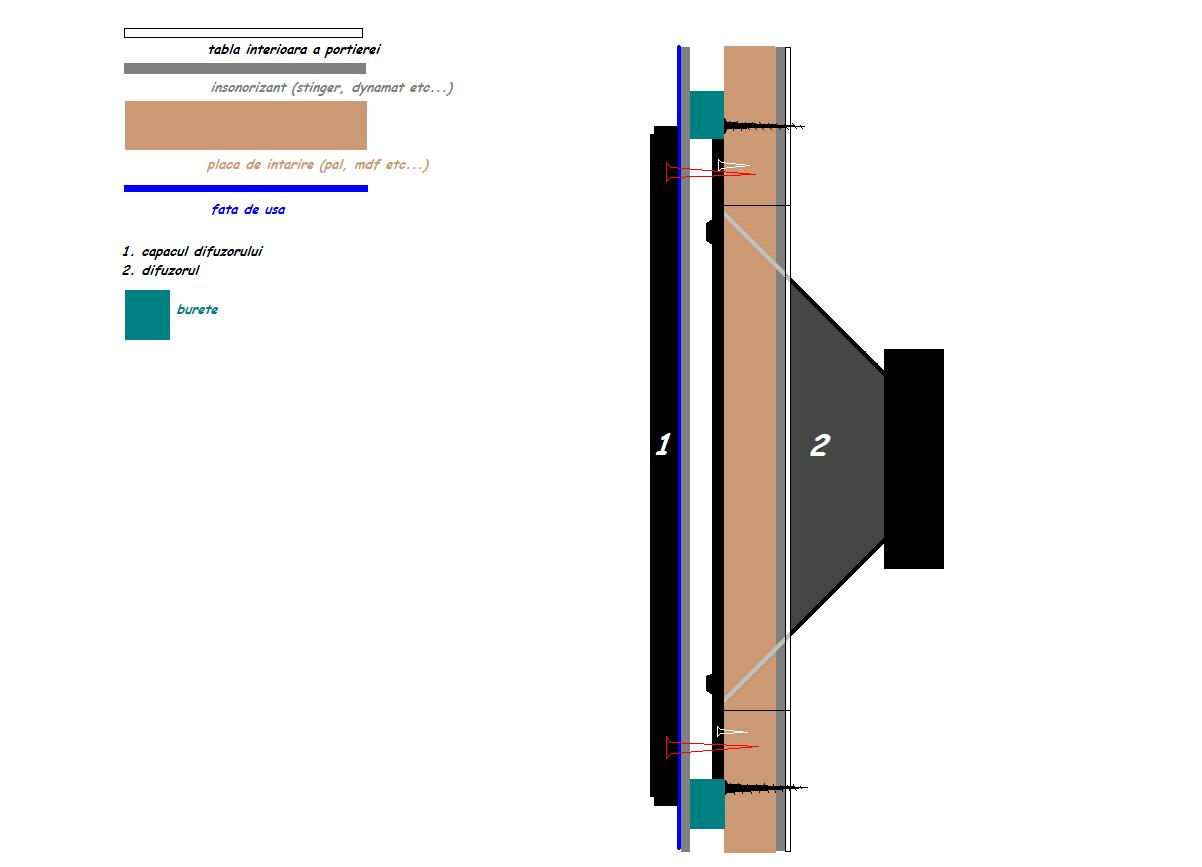 schema de mai sus e valabila la logan. unde intre fata de usa si tabla e un spatiu de 2-2,5 cm. la berlina tin minte ca vine fata de usa direct pe tabla. deci schema de sus cam pica. dar cu putina imaginatie si indemanare se poate face ceva.