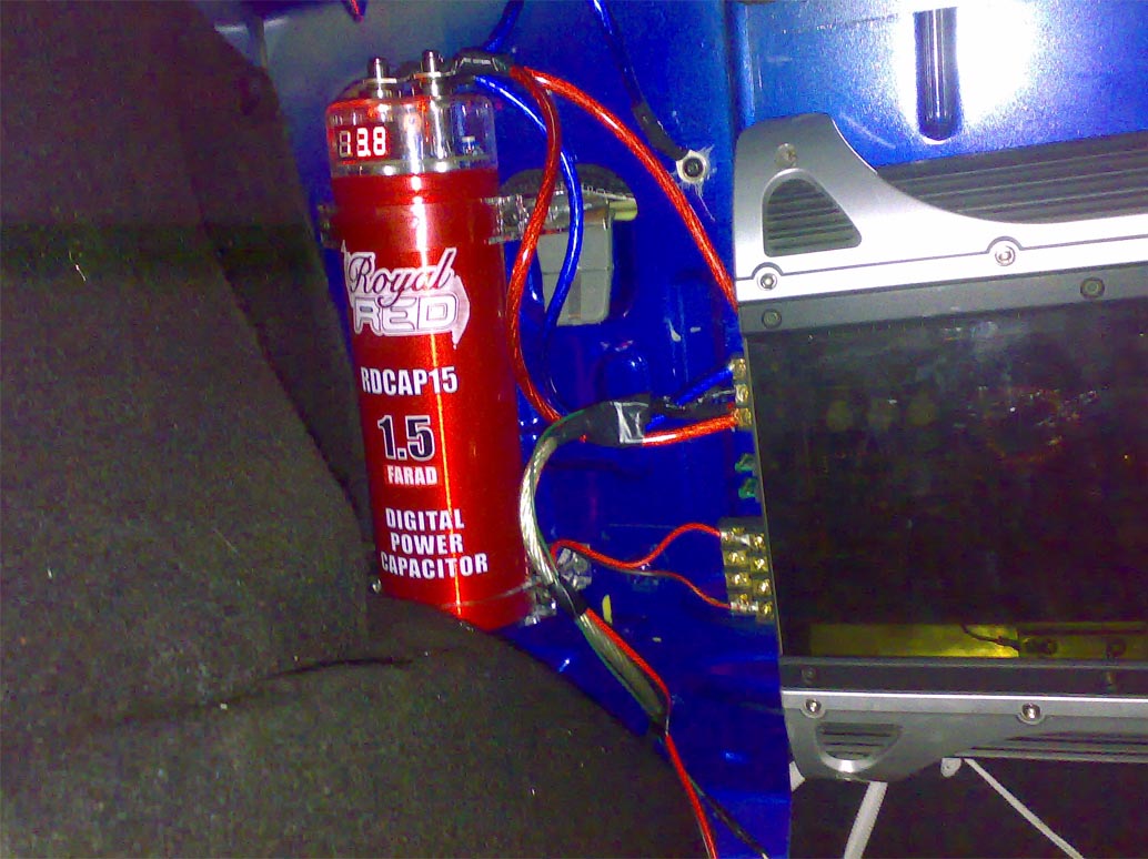 am acelasi condensator montat in aceeasi pozitie (super tare), nu se opreste, afisajul ramane mereu aprins este doar un volmetru nu consuma mult chiar face bine unei baterii sa existe mici consumatori pe ea, nu cred ca are legatura cu alti consumatori din masina el fiin pus in paralel cu bateria (oaresicum)