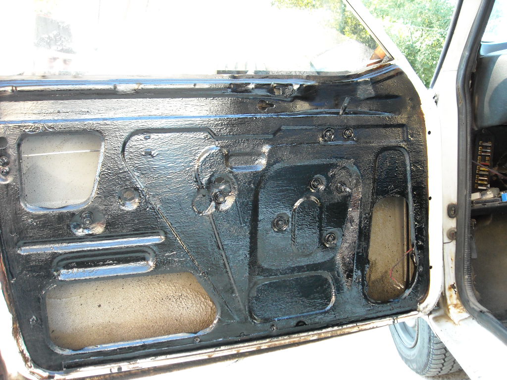 baga antifon si pe interiorul usii, pe tabla exterioara. si incearca sa astupi gaurile din portiere ( ti-a sugerat si ssrli ), toate in afara celor din coltul de jos, langa balama. acolo vine magnetul difuzorului. restul astupa-le cu tabla sau placaj ceva subtire, le prinzi de usa cu holzsuruburi de exemplu ( nu uita sa trantesti un strat de antifon si pe acestea ). daca iti ajunge antifonul ai putea sa mai aplici un strat pe fetele de usa, dupa ce se usuca pui si speakerkit-ul ce l-ai cumparat ( e investitia ta, nu vreau sa te jignesc, dar din cate stiu nu prea face mare diferenta acel pack de insonorizant ). dupa ce aplici si dynamat-ul poti incepe montarea inelelor de mdf, a fetei portierelor si a difuzoarelor.