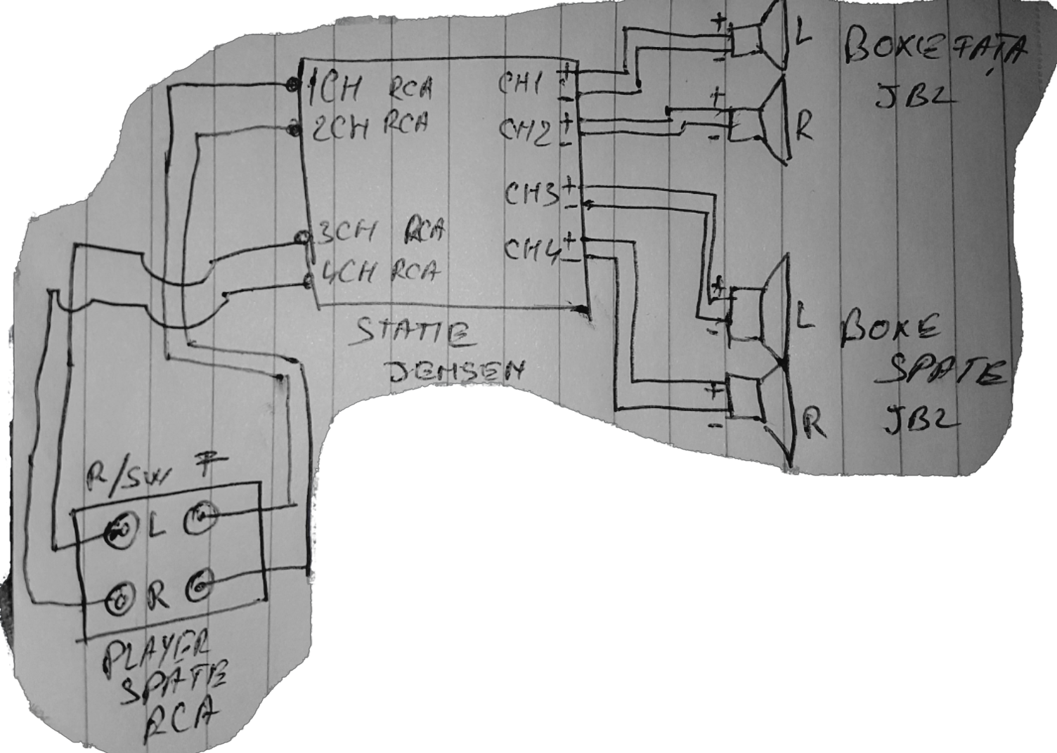 si inca un mic ajutor despre cum ar trebui sa leg boxele la amplificator si ce intrari/iesiri sa folosesc ? o schema m-ar ajutaÂ