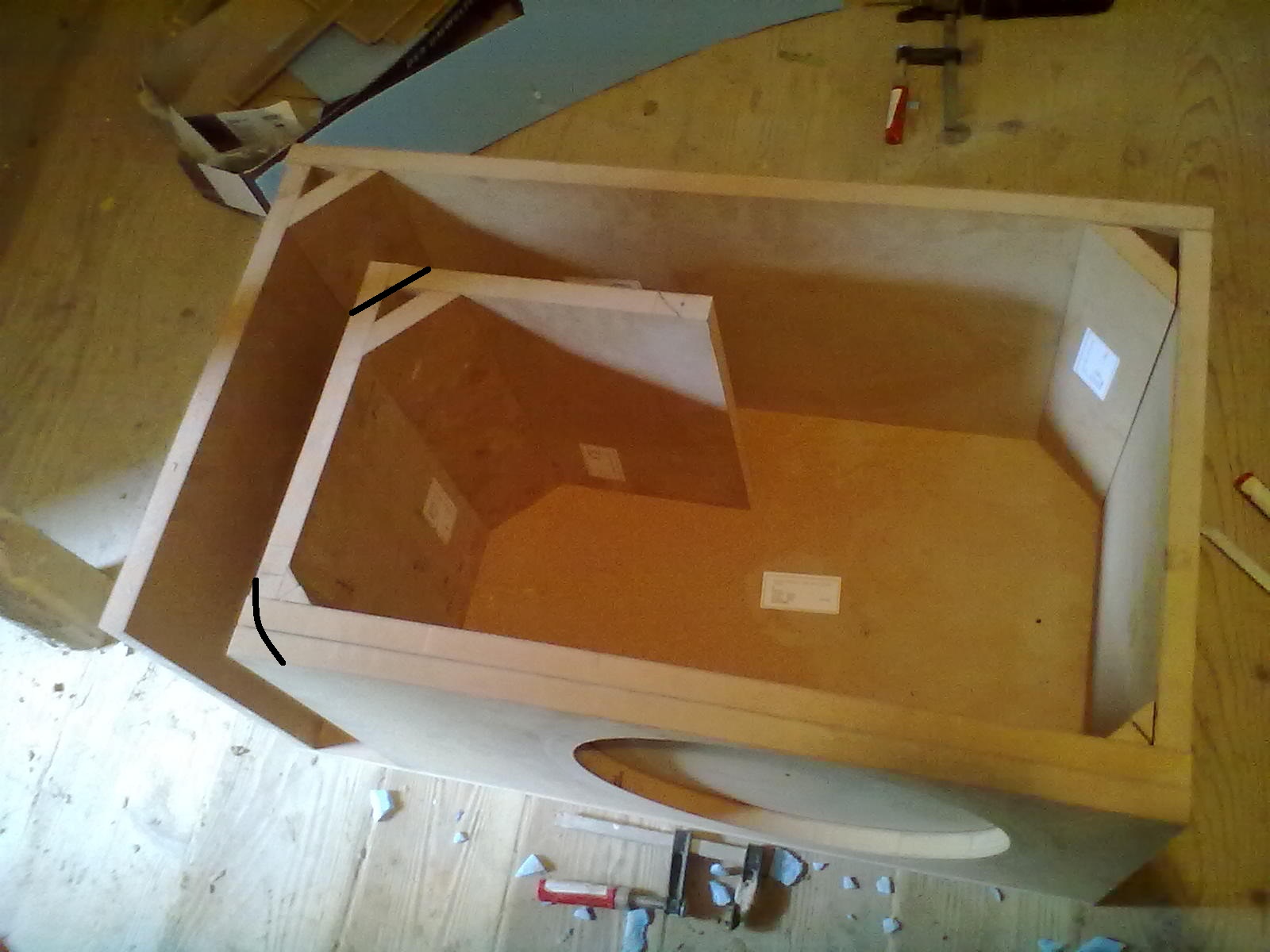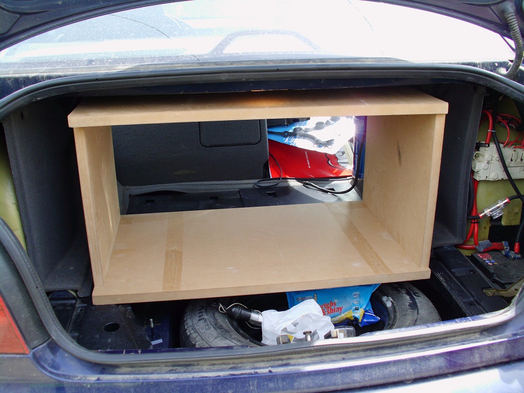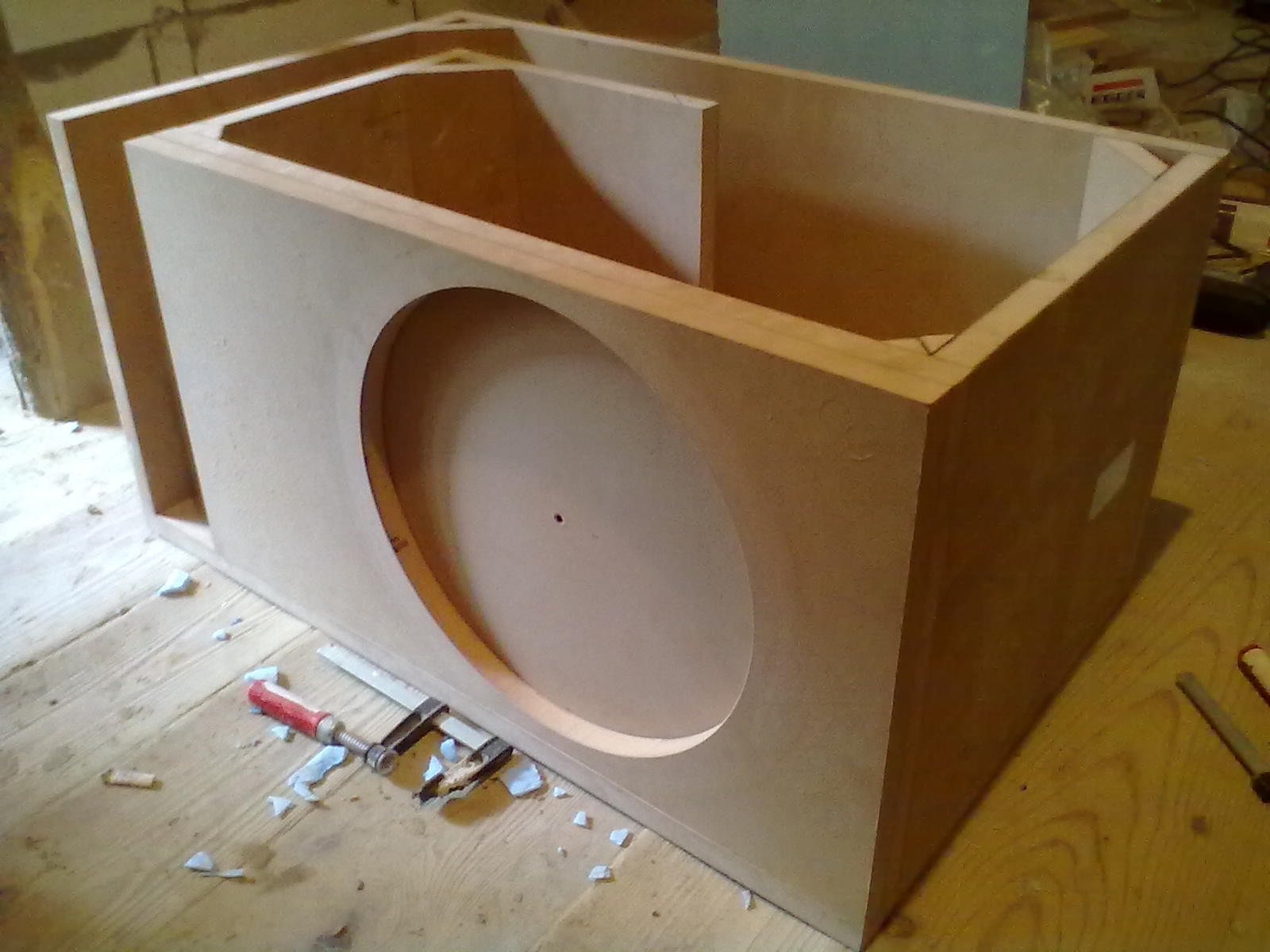 Cine vrea sa stie detalii despre cutie, pot spune doar atat. Ca va fi destul de mare, fata de cum se vede in poze. Are cam 128 L in INTERIOR cu tot cu port si difuzor. Exteriorul aproximativ 140 litrii. Acordata undeva la 33 hz. Difuzorul in specificatiile lui, 33,6hz, deci e perfect.