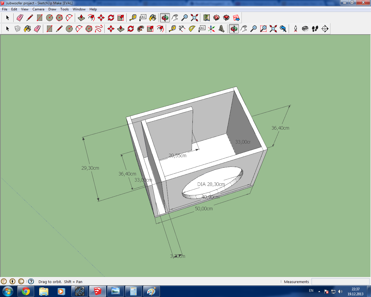 - aveti cumva un calcul facut pentru subwooferul asta? cu Winisd nu ma pricep.. eventual o schita cu dimensiunile incintei..