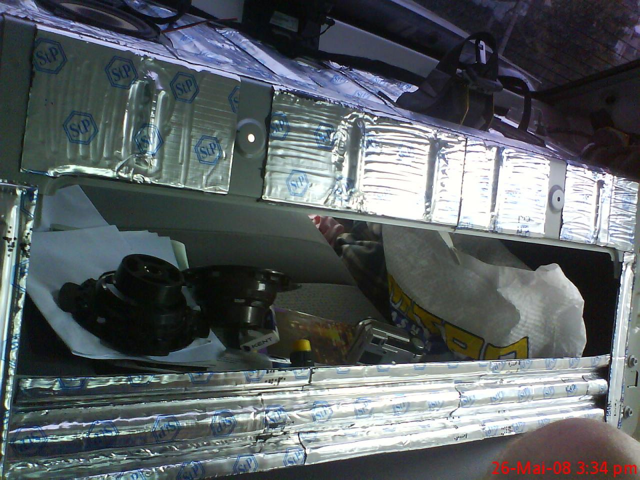mam gandit la variantele de acoperire cu tabla , plastic , textolid sau fibra de sticla ... dar exista un impediment ... gaurile ! nu vreau sa prind materialul in sububuri , nu vreau sa gauresc pentru ca odata gaurit protectia tablei se duce + insonorizantul aplicat in acea zona nu va lasa gaura "sa respire" .. in cazul acesta as ajunge la rugina !