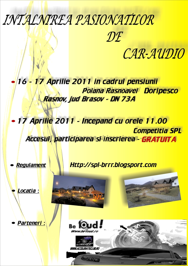 Trimis: Mar Apr 12, 2011 11:21 pm Titlul subiectului: COMPETITIE SPL- 17 APRILIE-INTALNIREA PASIONATILOR CAR AUDIO |