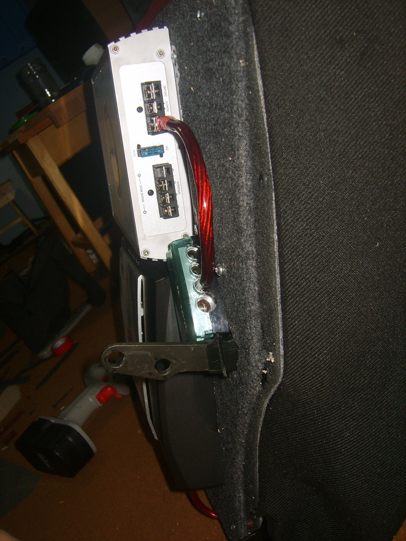 Azi am mai facut ceva modificari.Amplificatoarele se pare ca nu erau prinse foarte bine direct pe bancheta...am gasit 3 suruburi sarite, de la vibratii.Asa ca m-am pus pe treaba si cu putina rabdare, pot sa zic ca a iesit chiar bine, acum pot face si putin wire management .