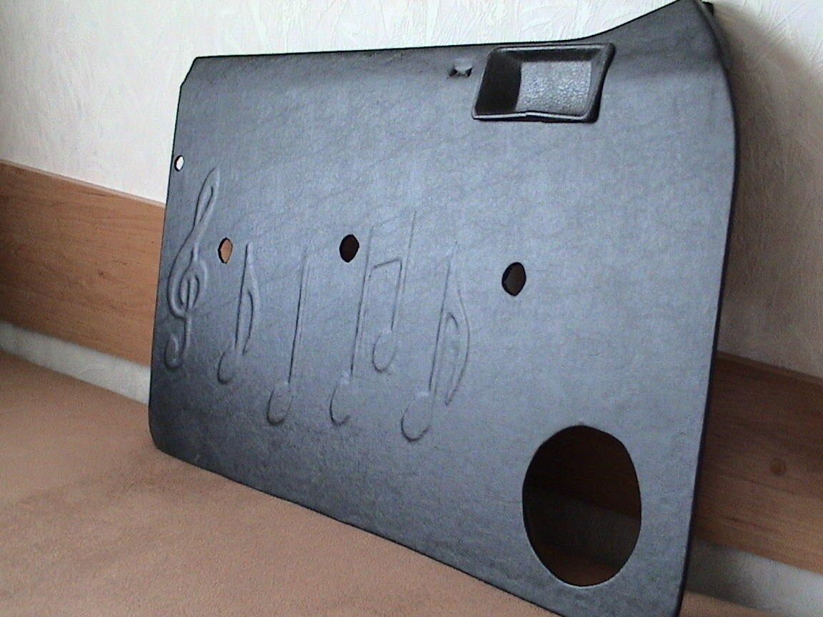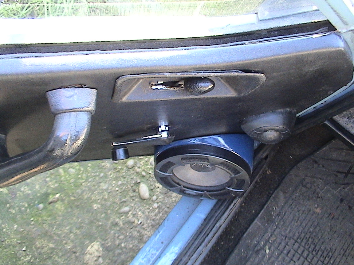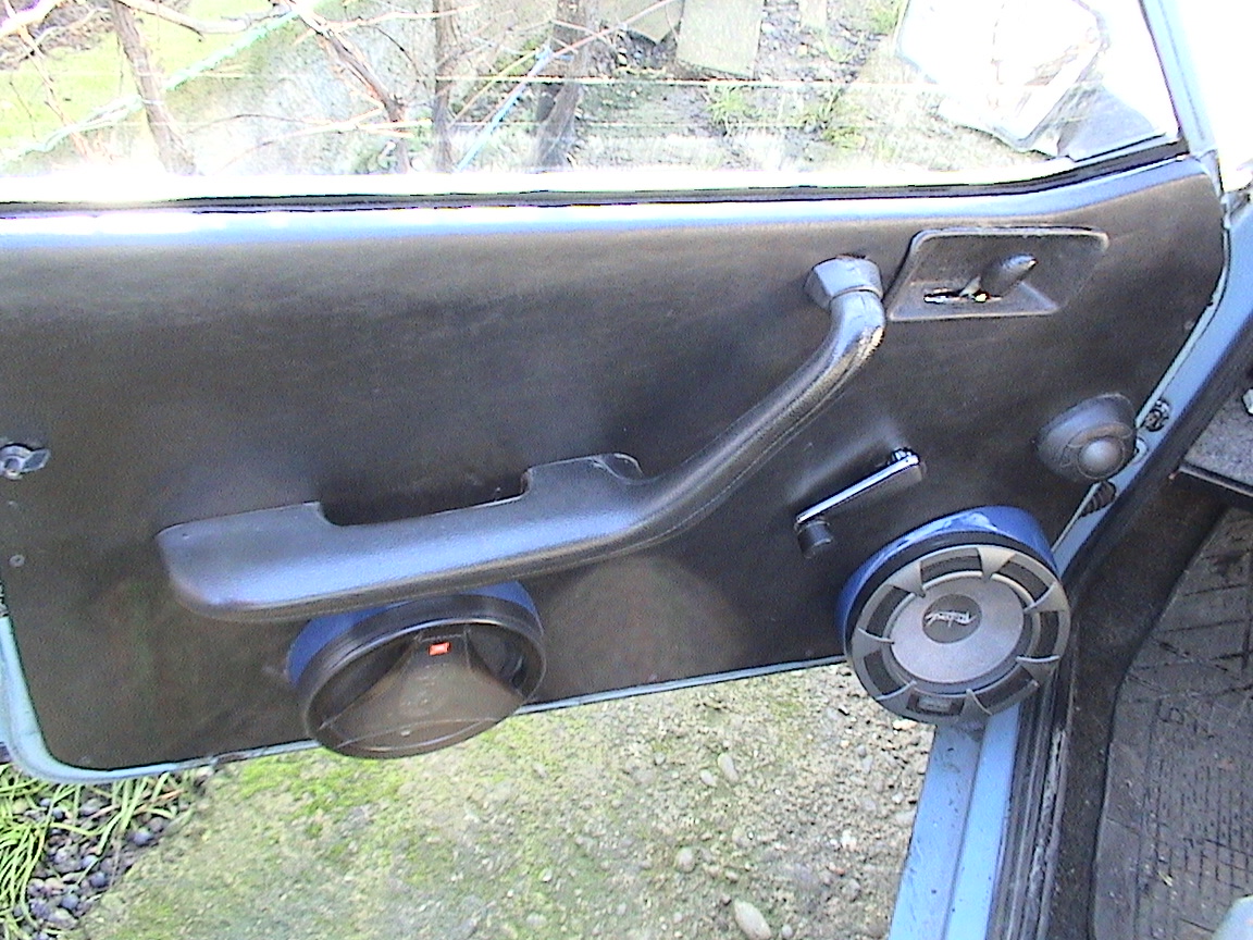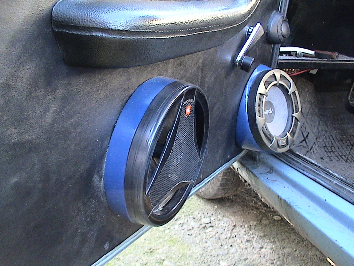 | Usa din fata: Difuzoare JBL 636e si Spectron SPC26Z instalate. Inelele sunt facute din placaj si chit cu fibra de sticla, apoi vopsite. |