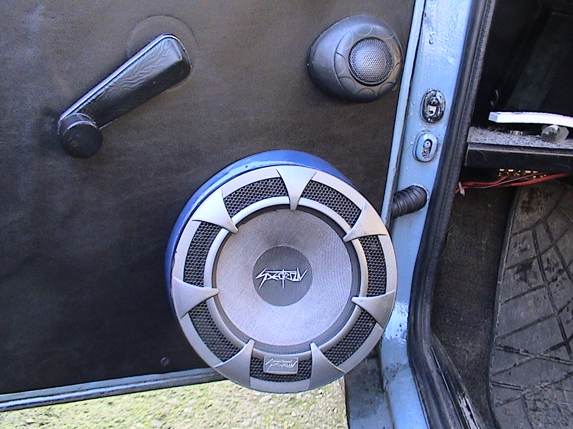 Ceea ce priveste instalarea sistemului audio: subwooferul se afla in portbagaj prins cu suruburi de peretele care desparte habitaclul de portbagaj. Difuzoarele coaxiale sunt legate direct la HU, iar amplificatorul alimenteaza in tri mode subwooferul si difuzoarele pe componente. Cel mai greu era sa antifonez si sa rigidizez tabla de pe masina (ca doar e o Dacie) ca sa nu am probleme cu vibratiile deranjante (aici ma refer sa nu cante caroserie, masaj pentru spate am si acuma si-mi place). Este adevarat ca difuzoarele totalizeaza 720 W RMS (subwooferul 400 WRMS, coaxialele 60WRMS, componentele 100WRMS) dar amplificatorul scoate maxim 600 W, iar in modul bridge 300WRMS. Urmatorul lucru ce o sa fac este sa cumpar inca un amplificator pentru medii si inalte, iar amplificatorul pe care-l am momentat o sa folosesc doar pentru amplificarea subwooferului (nu o sa am nevoie de filtru pasiv, care acum este necesar, atat pentru filtrare cat si pentru ca subwooferul si filtrul sa aiba impedanta (legate in serie) de minimum 8 ohmi, pentru ca amplificatorul lucreaza acum in tri mode)