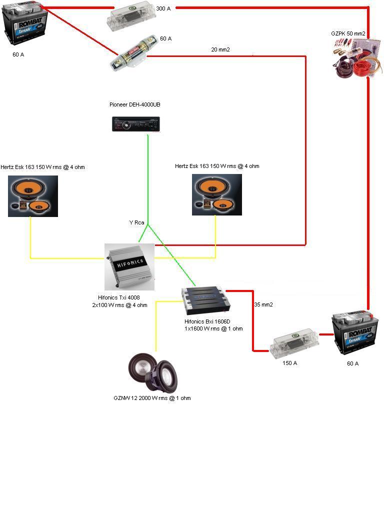 eu am o singura baterie de 88Ah , si tot pe acolo sunt, tot hifonics am , numai ca de 1500w si nu sunt probleme.