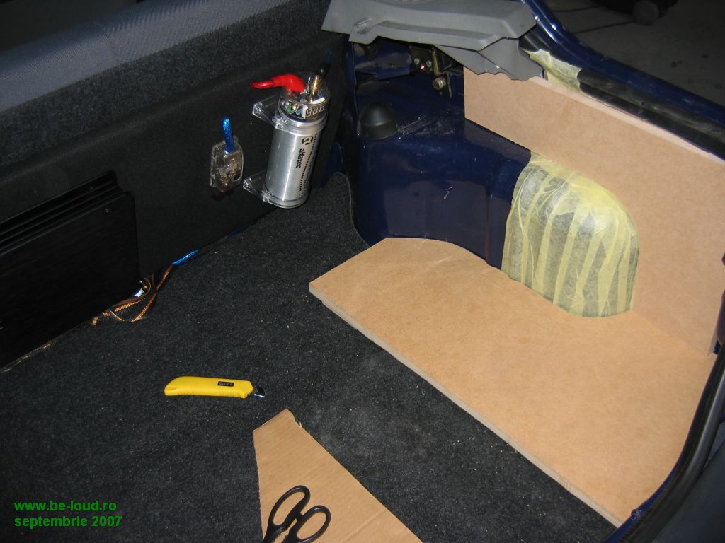 Vor urma o serie de poze pe masura ce progresam. In plan sunt incinte sealed in usi, schimbarea difuzoarelor fata, schimbarea woofer-ului cu unul de 25cm pus intr-o incinta sealed custom..