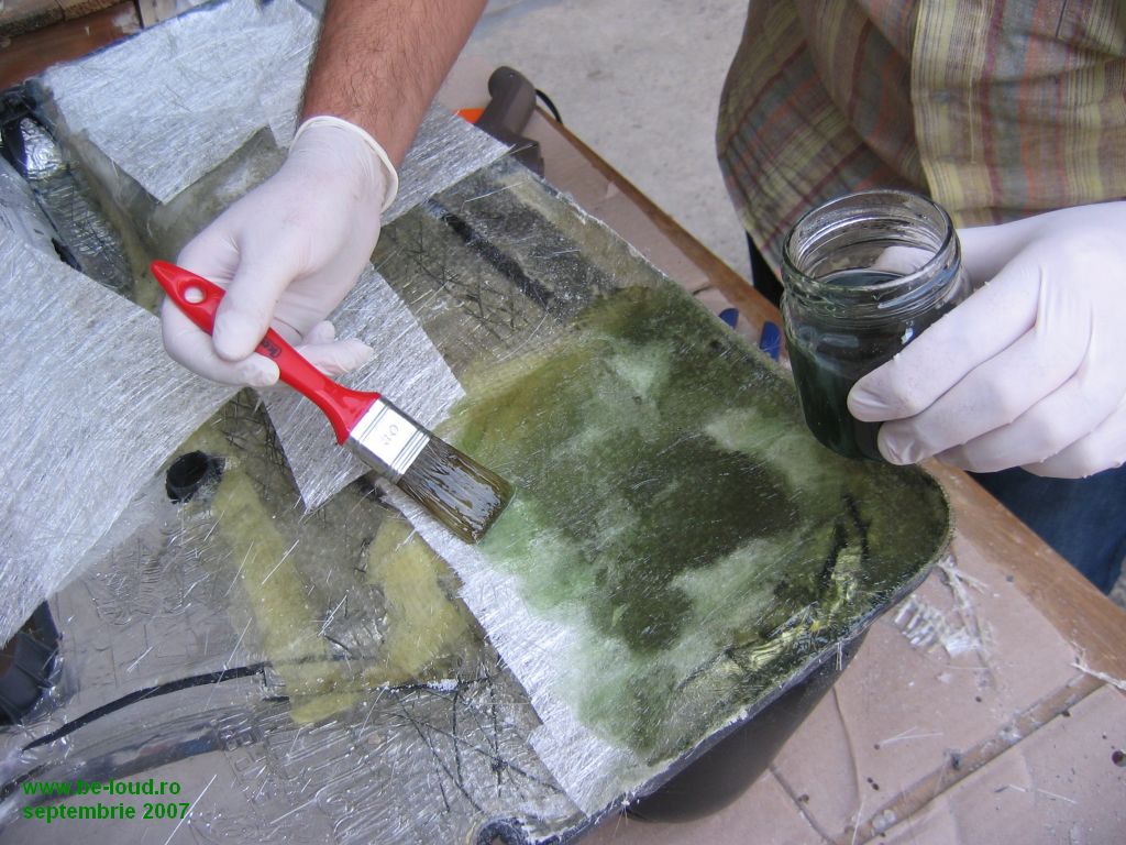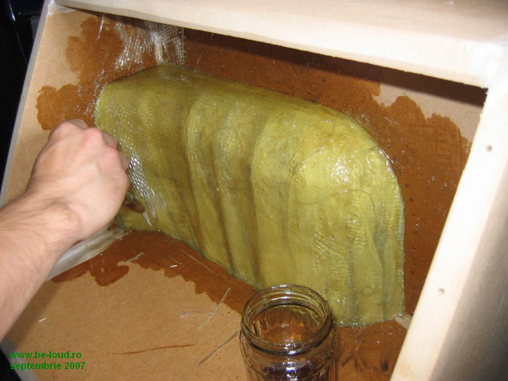 Dupa Timisoara m-am hotarat sa incerc woofer-ul in sealed si fiind pe graba am ales sa modific incinta originala bass reflex. Am astupat portul BR pe interior si am pus difuzorul cu magnetul afara pentru a scapa si de problema protectiei difuzorului.