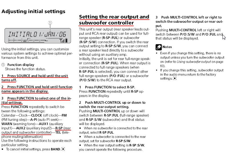 daca ai si sub, dar doar 2 perechi RCA la player, renunta la LPF-ul de pe iesirea RCA rear/sub, lasa semnal full, pentru difuzoarele spate. foloseste caburi RCA Y pentru a multimplica acea pereche RCA, asfel incat sa dai semnal si pentru subwoofer, chiar daca e semnal full, folosind filtrele statiei pentru un semnal corect dat subului. astfel, nu vei avea reglaje independente din player pentru sub si spate, dar vei avea reglajele independente fata/spate.