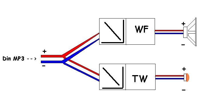 Sa recapitulez si eu odata: "+" de la HU vine la "+" de la filtru woofer si tot pe acelasi fir vine si se mai leaga si "+" de la filtru tweeter ? Analog si pt "-". Adica se leaga in paralel, sa inteleg, dar asta nu inseamna ca o sa scada impedanta la 2 ohm ? (nu dati cu pietre daca nu e asa daor ca asta scrie in manualul de la hertz)