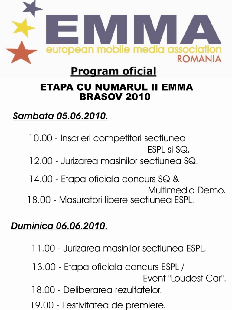 Trimis: Sâm Mai 22, 2010 1:58 pm Titlul subiectului: Etapa a II-a EMMA Romania 2010 Brasov 05-06 Iunie |