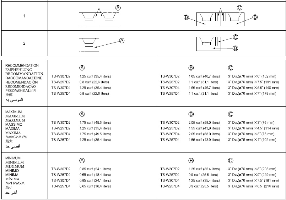 Azi am masurat-o si are exact 45 de litri; o sa vina pe ea un Pioneer TS-W307D4 cu un port de 3" diametru si 5.5"lungime.
