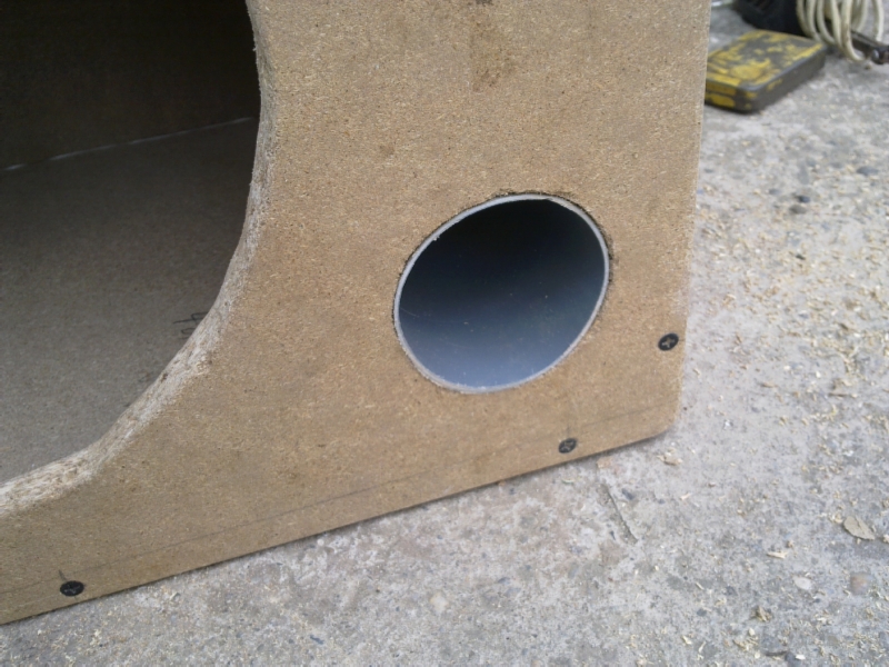 Port din plastic pentru incinta nu am gasit de cumparat la dimensiunile la care am nevoie ( 7,6 cm diametru si 14 cm lungime) asa ca o sa ma orientez spre teava pvc si un inel din lemn deasupra ca sa acopere marginile si sa arate mai bine.