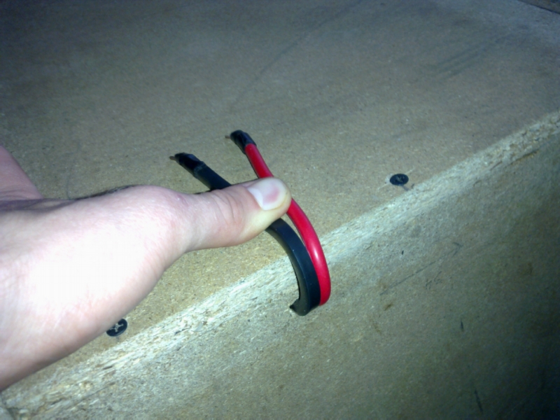 | Firul l-am scos direct prin placa fara a mai folosi conectori si este putin scos inafara intrucat amplificatorul va fi montat chiar deasupra incintei. |