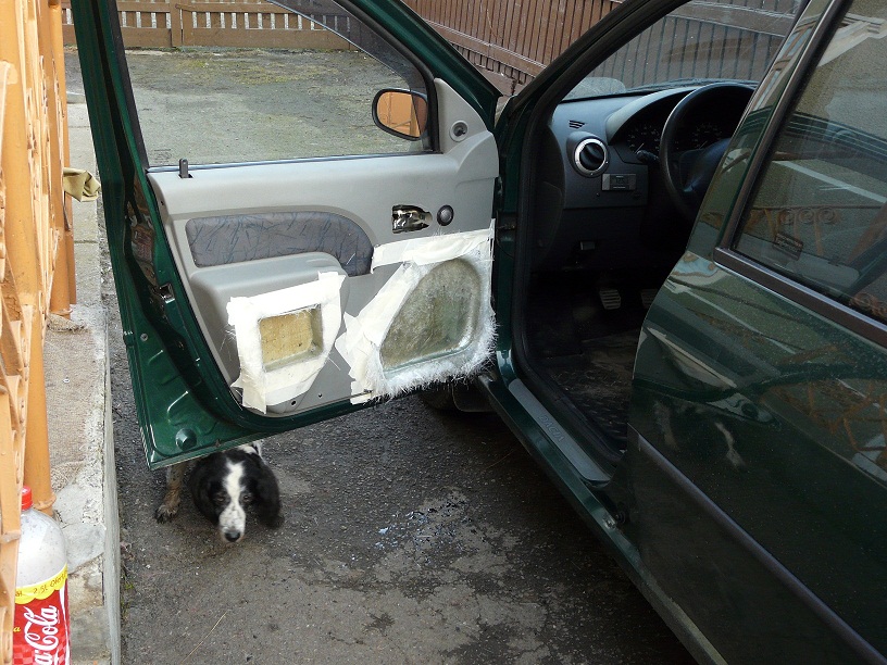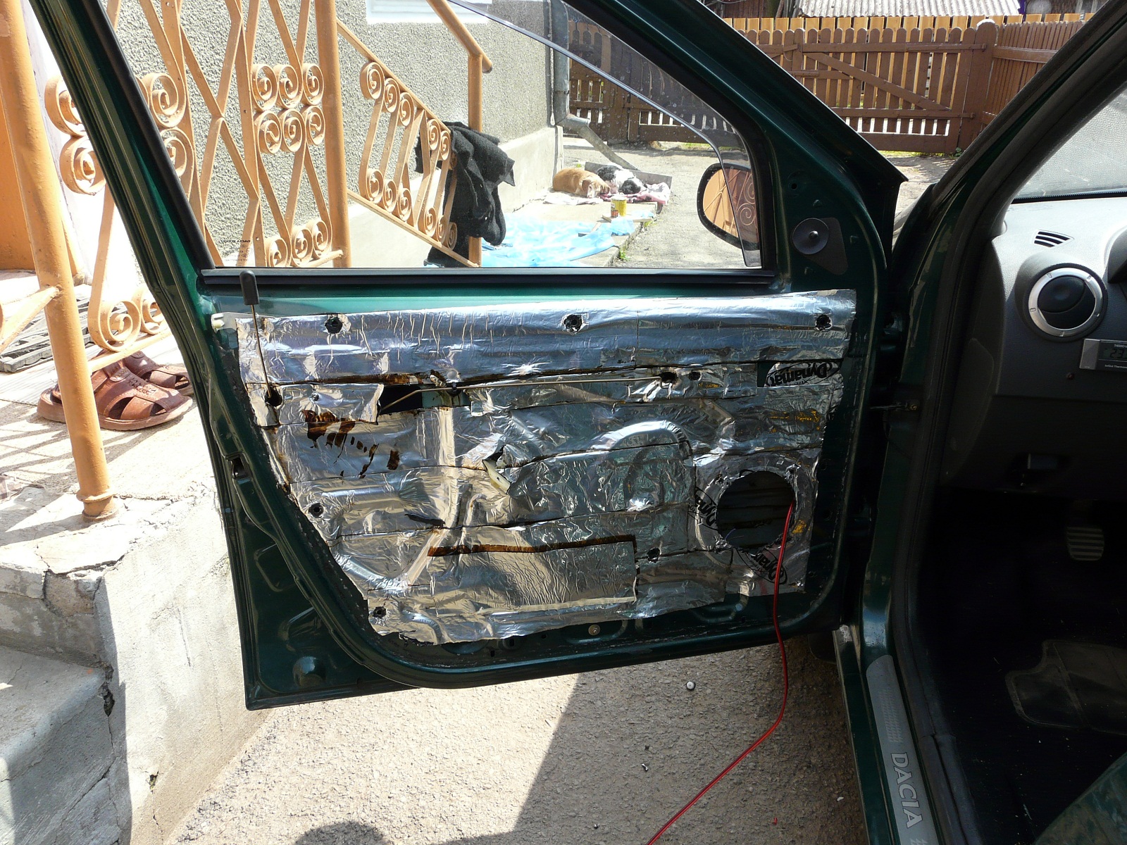 Usile erau insonorizate la interior cu aluband si vopsea cauciucata insonorizanta, la exterior cu aluband iar acum am dat si cu un strat de fibra de sticla pe fata de plastic(pe interior).