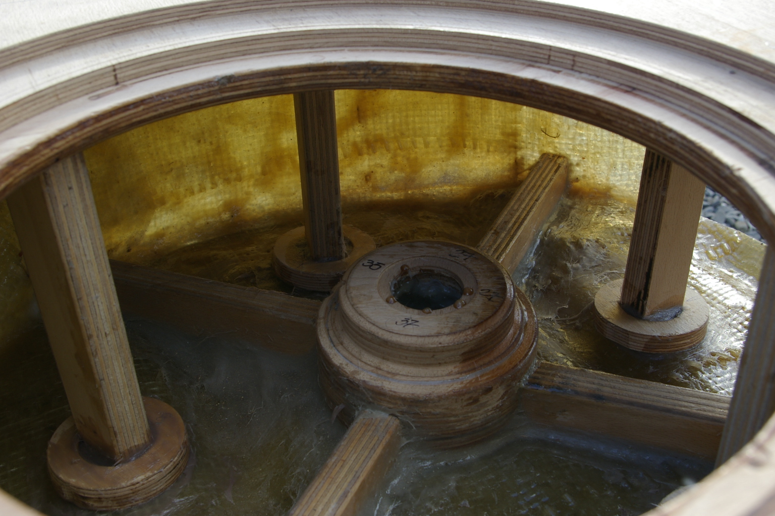Cand am cumparat rasina mi-a dat si niste plase din fibra de sticla dar nu aratau cum arata cele a lui IM erau mai mici ca dimensiuni dar mult mai dese fibrele in ele. Le-am pus, dar nu a fost suficent. Am pus o bucata de lem pe post de ramforsare si acum e ok, nu schiteaza nimic nu se misca nimic sau sa se auda ca un butoi cum zice-a si tonu adrian.