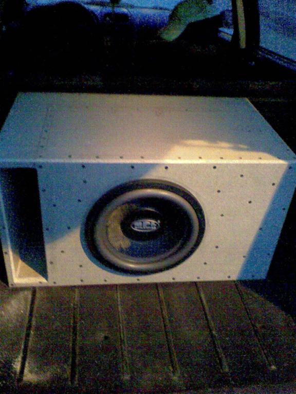 un alt proiect a reprezentat executarea unei incinte pt daily-use care la cererea clientului ar fi trebuit sa fie capabila sa reproduca un bas foarte jos....grav...dar sa-si pastreze in acelasi timp agresivitatea specifica unei acordari "sus"...urmand a fi montata intr-o masina foarte foarte neprielnica aplicatiilor "bassiste"..un bmw e46...a rezultat o incinta extrem de echilibrata cu un raspuns foarte bun pe partea de joase(sub 40 hz) si extrem de agresiva peste 40hz...un raspuns echilibrat pe o plaja larga de frecvente...si cu o eficienta foarte buna plus un control bun pe difuzor...difuzorul in cauza un SPL Dynamics XTR in probe cu aproximativ 900 w pe el comportandu-se exemplar...