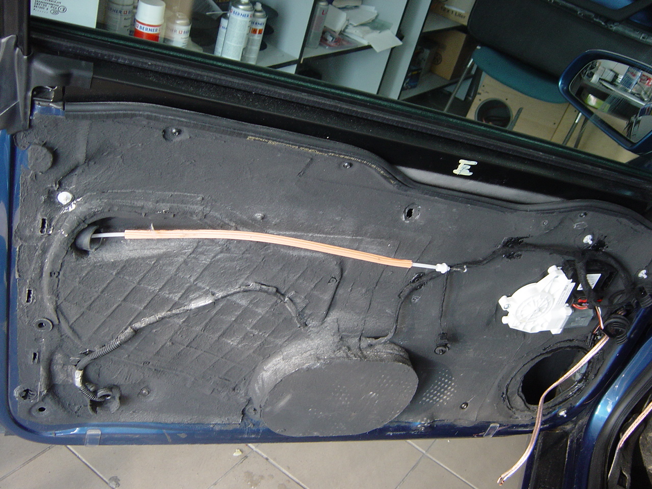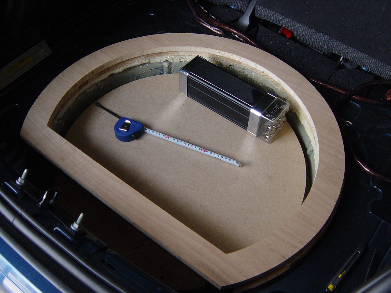 Partea de jos a fetei de usa a fost modificata pt. a gazdui si inclina difuzoarele de 20 cm, in timp ce tw si-au gasit locul pe niste suporti construiti manual din fibra de sticla, care imbracau o parte din stalp.