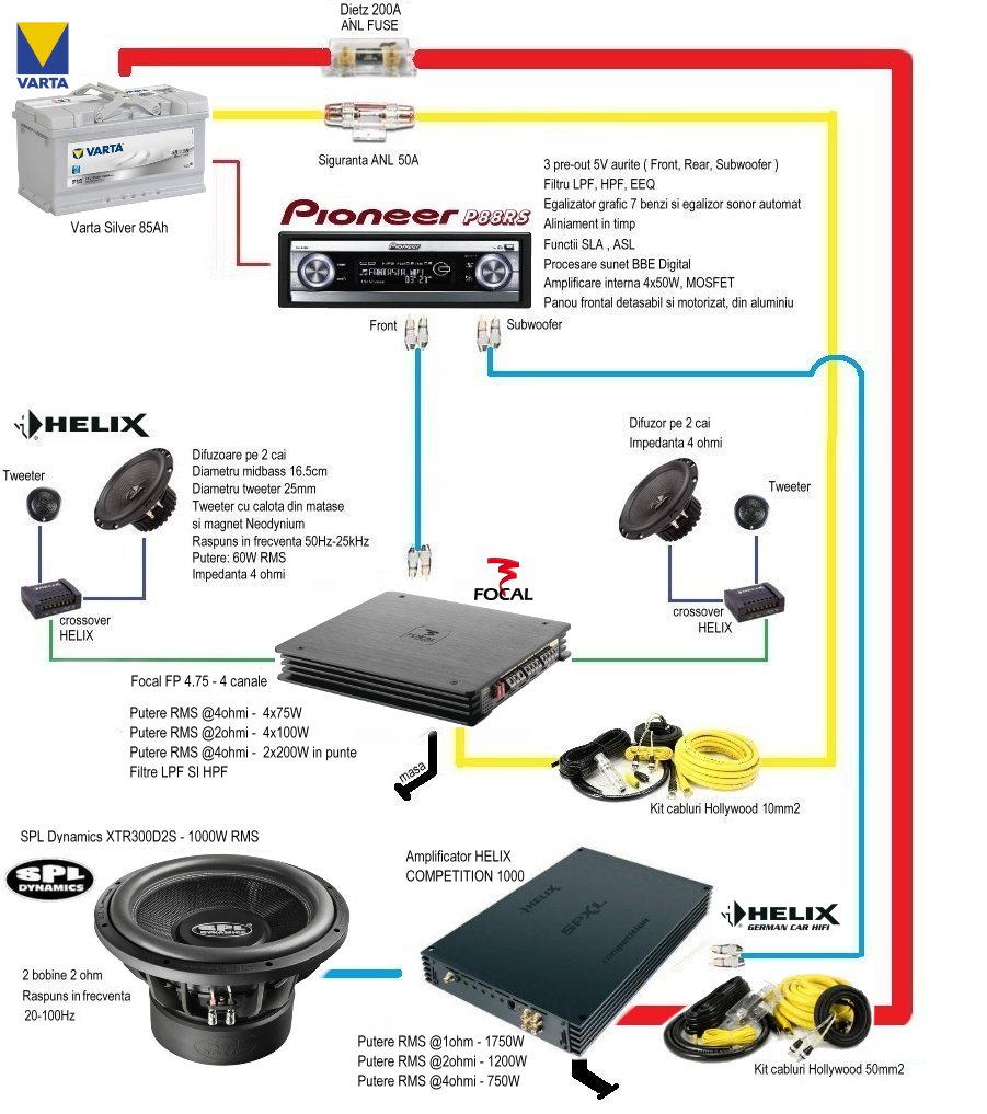 Intre timp, sistemul a suferit mici upgrade-uri, am schimbat ambele amplificatoare, difuzorul de bass, bateria, Big3 la motor, etc.