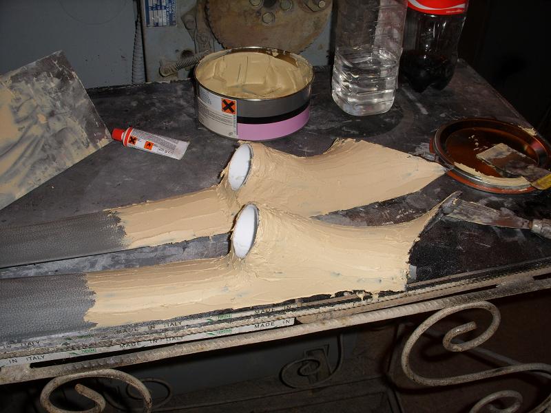 | multumesc pentru aprecieri. tuburile nu s-au deformat deloc, surpriza cea mare am avut-o ieri noapte cand am pus stalpii pt proba si m-am speriat cand am vazut ca stalpul din dreapta nu vine la linie cu bordul, crezand ca s-a deformat din cauza rasinei, dar mai tarziu m-am uitat peste pozele postate mai sus si am vazut ca asa sta din fabrica. stalpii sunt aproape gata, azi vor primi stratul final de vopsea negru mat. urmeaza inelele mdf si montajul final. o zi buna