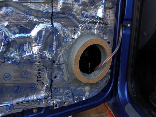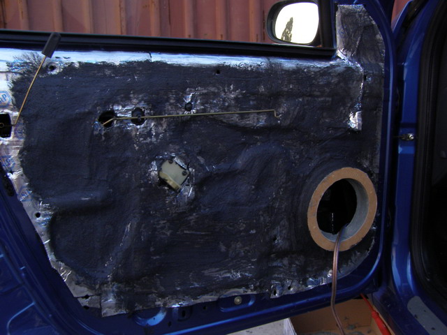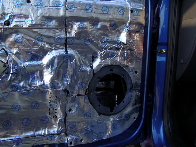 fata interioara de usa are doua decupaje mari (din fabrica) ....iar daca pun un singur strat de insonorizant acesta ar flamba (chiar si cu 2straturi) din aceasta cauza am folosit nois ex , pasta care rigidizeaza si mai mult suprafetele expuse la vibratii .