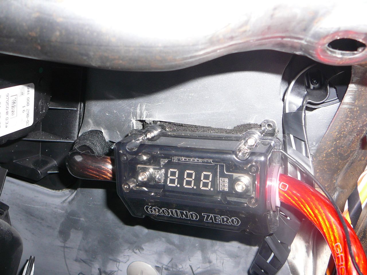 datorita spatiului foarte mic de la baterie, siguranta am montat-o sub bord, in spatele torpedoului. Cablul de curent este protejat de o teava de aluminiu pe portiunea care trece prin caroserie.