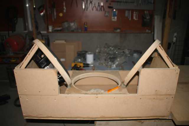 Am terminat tot ce tine de MDF....rigidizarea inelelor a iesit foarte bine,prinzandu-le cu suruburi plus fibra,ramanand acum sa intind panza si sa dau primul strat de rasina...