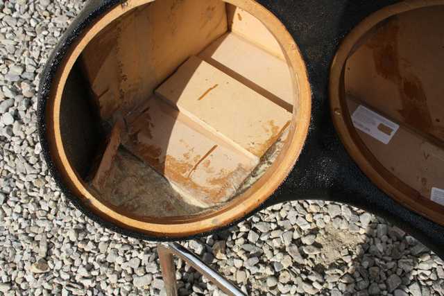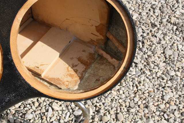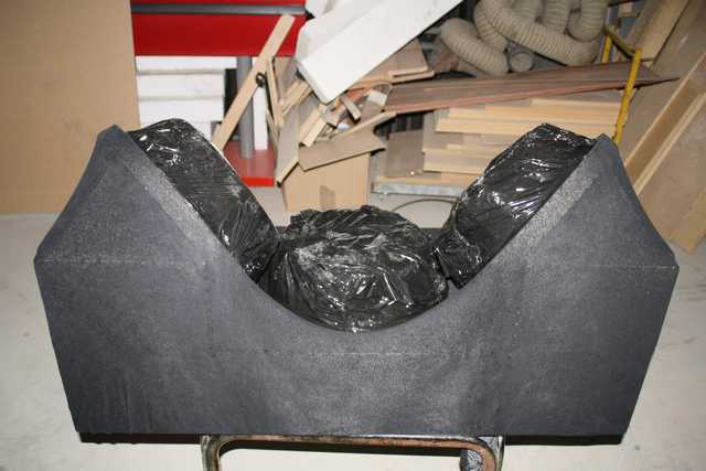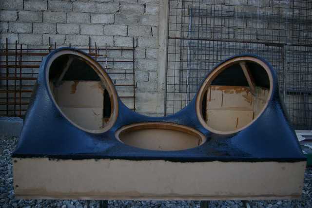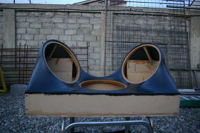 La interior, peste panza s-a dat o amorsa de rasina plus praf de marmura. Apoi s-au plantat lamele de placaj stratificat / MDF peste care a urmat "mamaliga" din stratimat tocat plus praf de marmura si rasina.