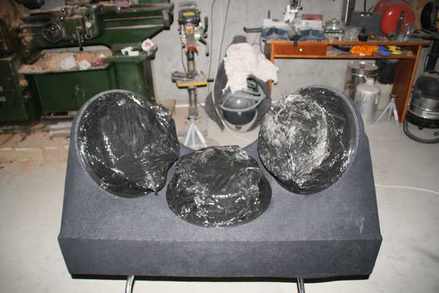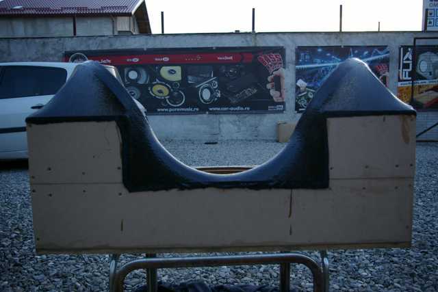 In poze este doar panza care a dat forma+3 straturi de rasina,urmanad ca pe interior sa pun bucatele de MDF cu rasina si praf de marmura,peste care voi mai lamina 1 sau 2-a straturi de fibra.Deja 70% din stratul de rasina cu praf de marmura este dat,astazi voi termina si sper ca ma voi apuca si de laminat cu fibra .