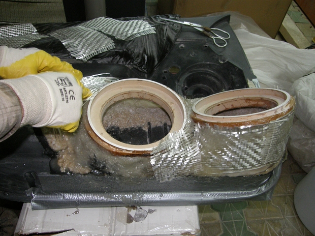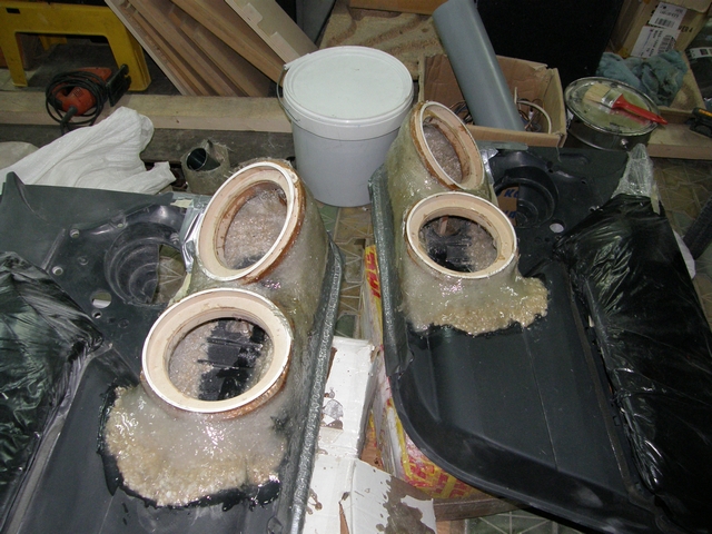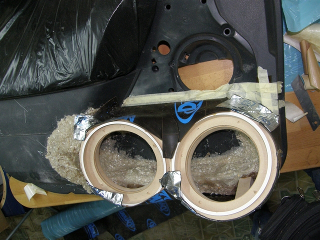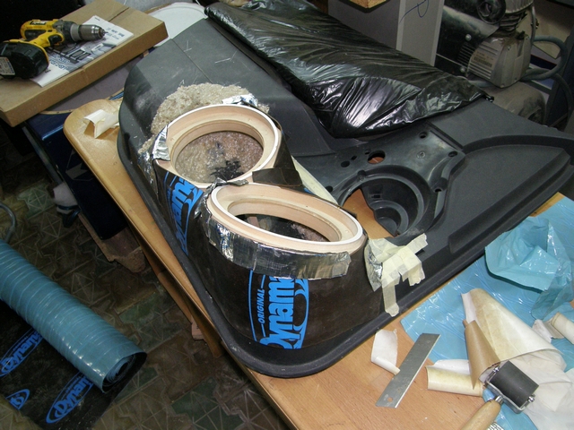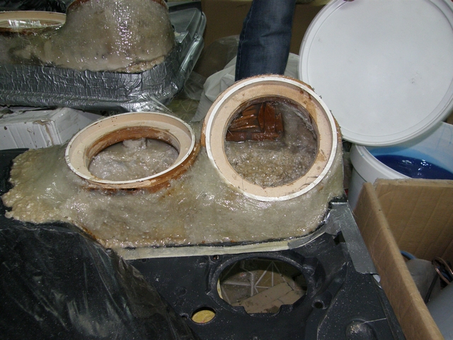 Se lucreaza la chituire,slefuire si dat forma finala,plus ca mai este putin de laminat cu fibra pe interior si ultima operatie o sa fie vopsirea,zic eu cu ceva frumos si rezistent avand in vedere ca suprafetele alea sunt expuse loviturilor de la cei care nu sunt atenti cand se urca sau coboara din masina..Restul sunt setarile si mai am de ales intre 2 sisteme de filtre,incercand sa gasim configuratia ideala pt mine sau pt urechile mele.
