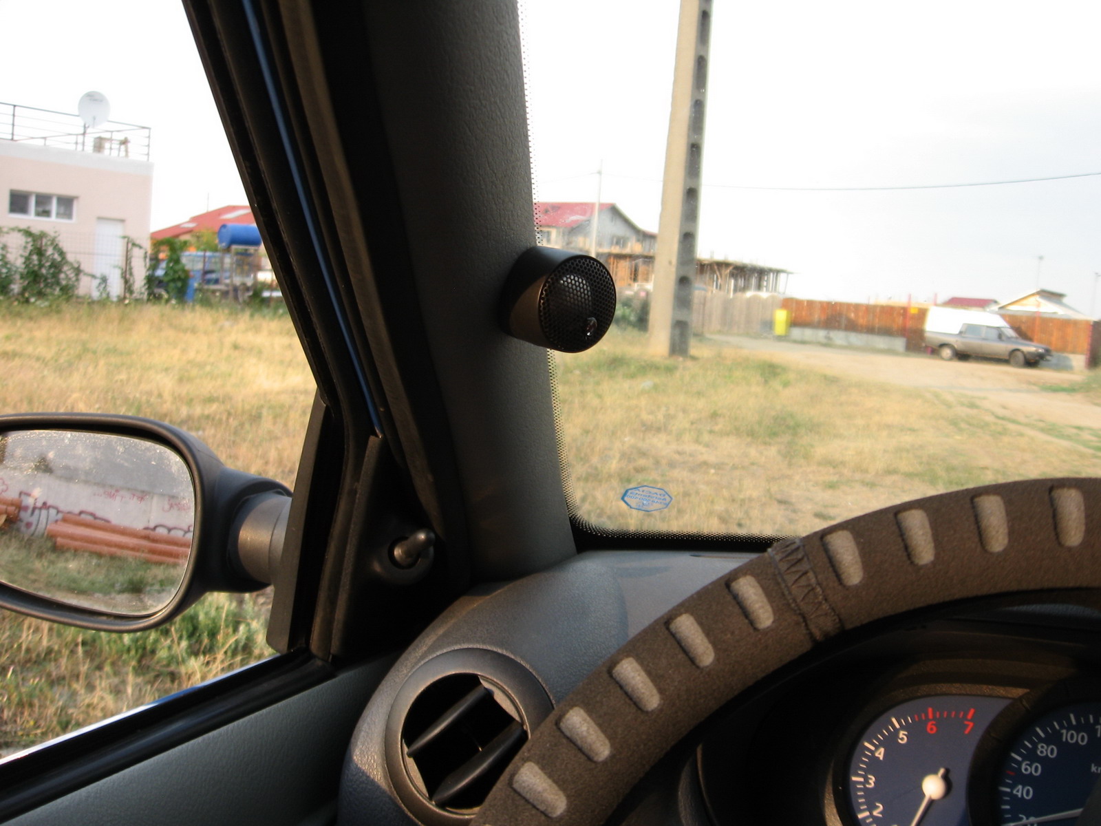 In viitorul apropiat mi'am propus sa fac impreuna cu Dorin si niste suporti pe stalpii masinii pentru tweetere , monmentan aceastea sunt prinse in surubri , deoarece nu au rezistat numai cu banda dublu-adeziva .