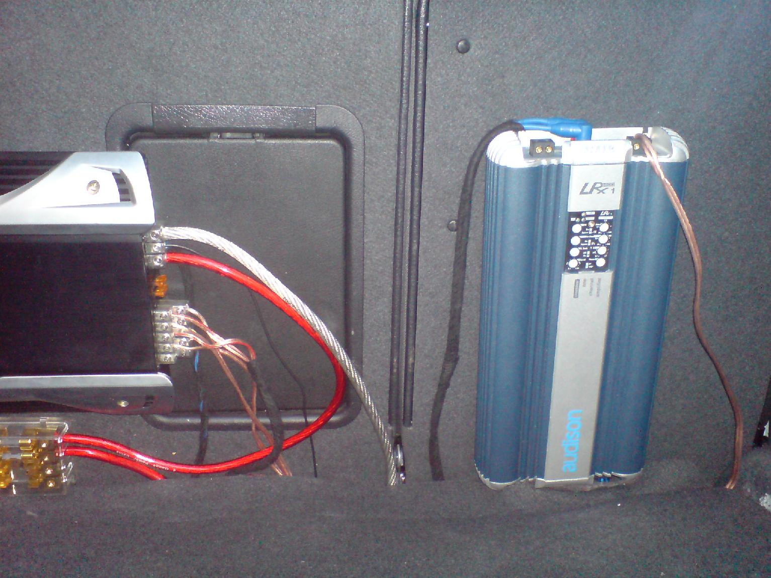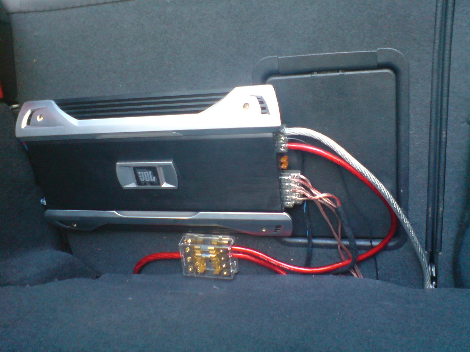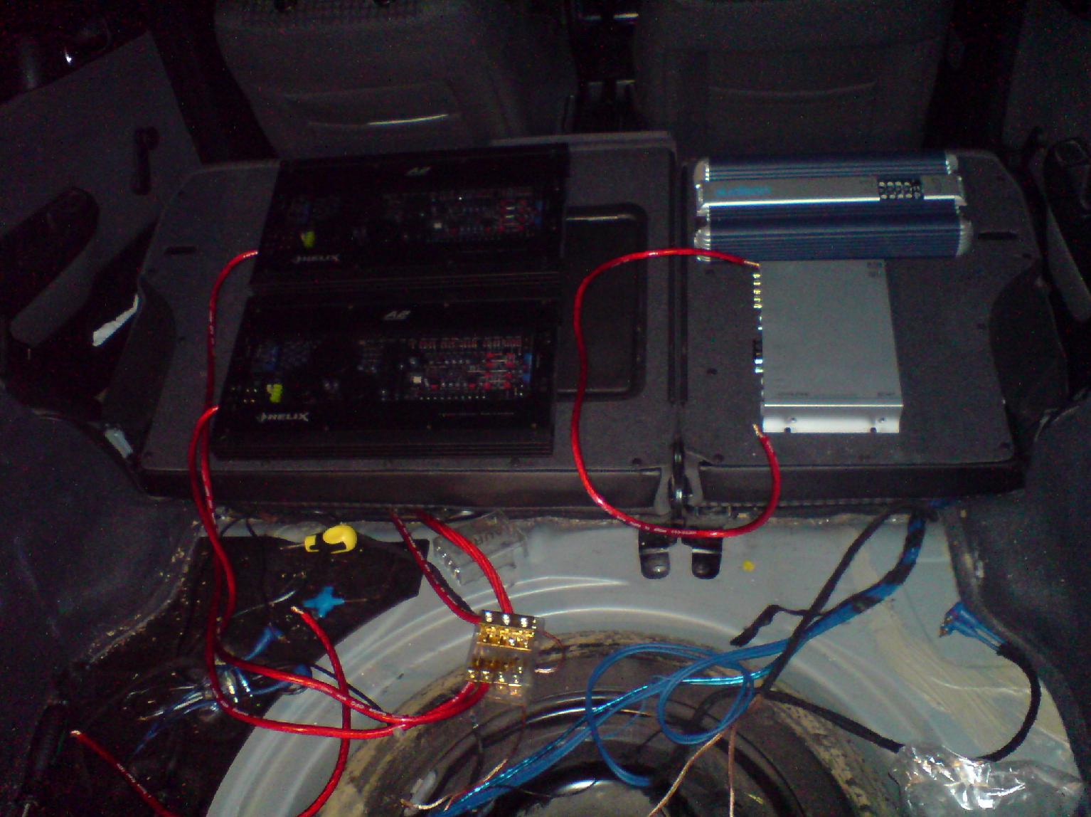 in momentul de fata sistemul este cel prezentat mai sus mai putin partea de bass care nu este montata dar vine si aia usor-usor. odata cu ea tre sa apara si alte 2 baterii impreuna cu un condensator de 1-2F ramane de vazut ce firma inca 2 trasee de 0awg intre bateriile fata-spate.