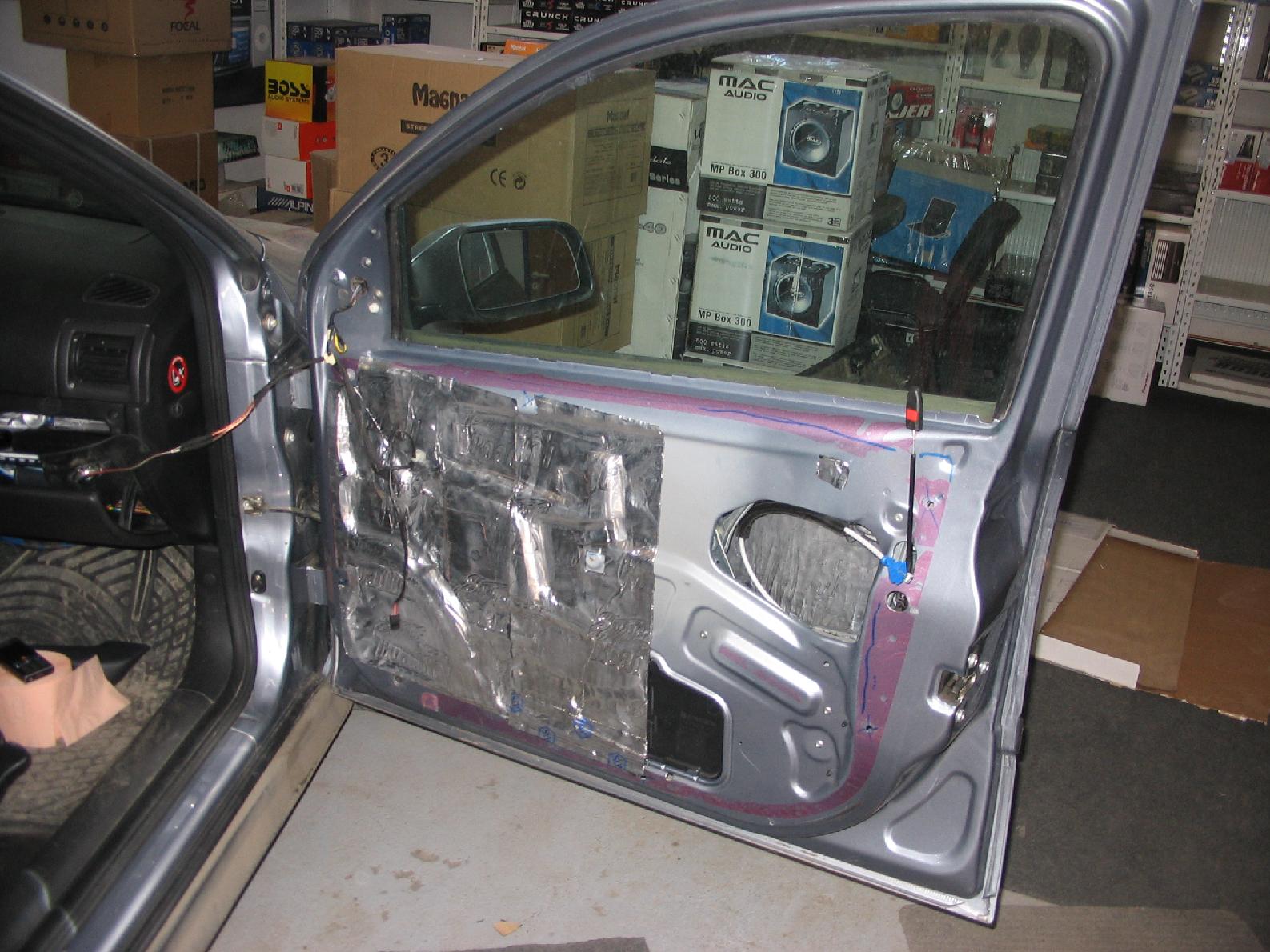 Toate bune si frumoase pana mi-am dat eu seama ca nu am suficienta putere pe difuzoare in usile fata (pe spate nu am difuzoare).asa mi-a venit ideea de a pune 2midbasii pe usa, lucru imposibil momentan din cauza macaralei geamului...dar urmeaza modificari si acolo.
