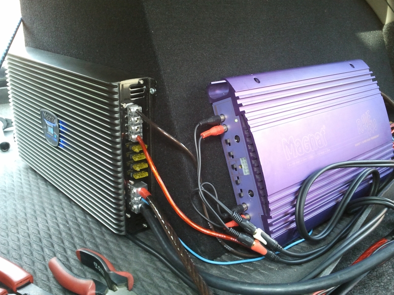 Totul a inceput anul trecut cand am schimbat boxele originale si am pus mac audio revolution x. Am vrut si un pic de bass si de atunci am pus urmatoarele: am amplificat boxele cu un magnat rave 440, gzhw 30x (incinta facuta de Adi) si pana recent am folosit un magnat black core one. L-am schimbat cu un orion 1200d.