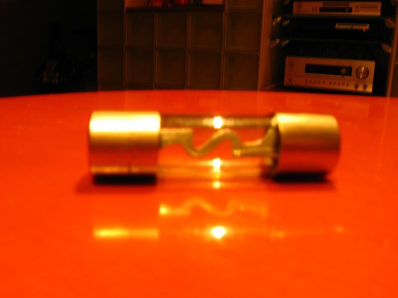 dupa ce am dat jos amp`ul si sub`ul si am refacut toate legaturile si contactele am masurat ce tensiune imi vine pe + si pe masa ... 12,2 V cu motorul oprit si 14,4 V cu motorul pornit ... toate bune si frumoase ... cand conectam amp`ul si remasuram pe bornele amp`ului primeam 0,25 V ... foarte ciudat mi`am zis la inceput ... apoi dupa cateva zile in care n`am mai avut timp sa lucrez mi`am dat seama de ceva ... cand nu aveam conectat nimic pe cabluri primeam tensiune corect , cand intra un consumator nu mai primeam decat 0,25 ... concluzia : in sarcina , ceva de pe traseu nu trimitea curent suficient ... dar numai in sarcina ... contactele fiind proaspat refacute mi`am indreptat atentia catre siguranta de pe cablul de + ... aceasta siguranta a fost primul lucru pe care l`am verificat okiometric ... nu era arsa , nu era crapata , nu era afumata , trecea curent prin ea (dar numai atunci cand nu avea vreun consumator pe fir) arata exact ca in prima zi cand a fost facuta de DIETZ ... am zis totusi sa o skimb si am skimbat`o cu o kinezarie de 5 RON ... acum totul merge perfect de vreo saptamana incoace