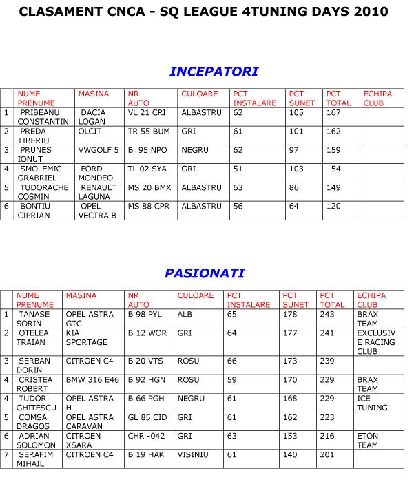 | clasament incepatori - pasionati |