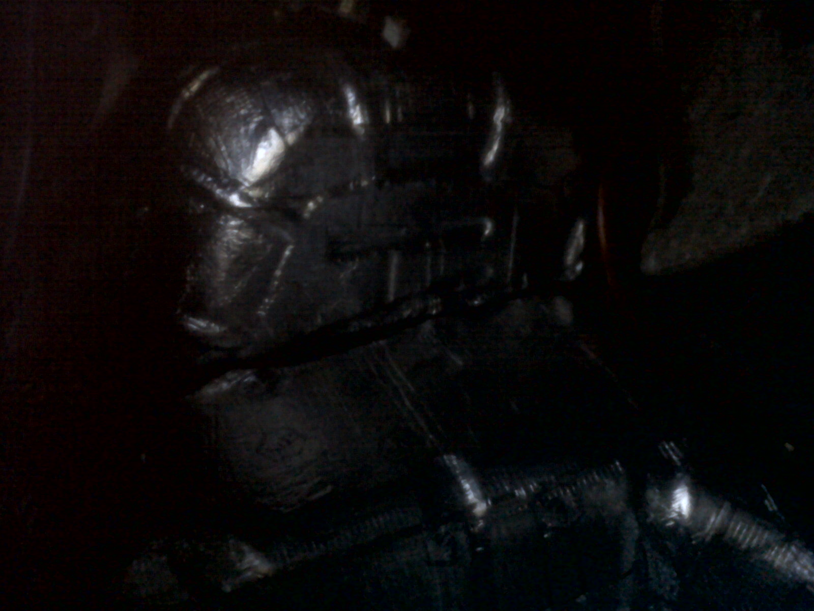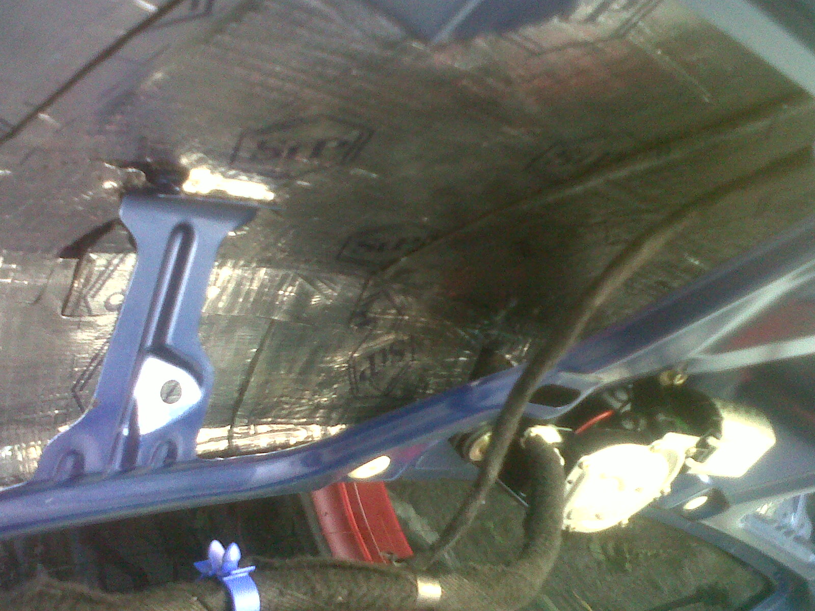 | benzile negre care se vad in poza le-am eliminat. am dat cu smirghel sau cum se scrie, pana s-a dus calumea de pe tabla.Mai bine tabla putin zgariata decat sa lipesc pe bitumul ala vechi si copt. asa am continuat peste tot pe unde a fost |