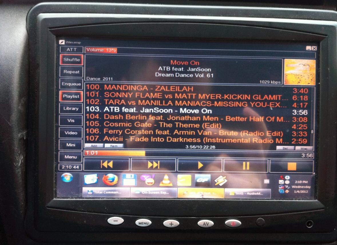 din motive de play-list, pata pe o melodie si sa nu fac un cd cu o singura melodie, am renuntat la alpine 9813 si am trecut la un car-pc, cu o placa micro itx, un celeron dual core de 1,6 GHz, 2 GB ram, 320 Gb, o sursa de 160W cu intrare de la 8V la 24V iar pe partea de sunet am o placa de sunet creative sound blaster titanium http://us.store.creative.com/Creative-Sound-Blaster-XFi-Titanium-PCI/M/B001E25KDK.htm
