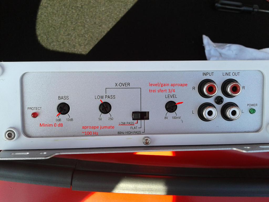 Salut, care ar fii reglajele cele mai corecte pentru o statie care are puterea mai mica decat difuzorul adica 180 w rms statia si 250 W rms wooferul . Ideea este ca difuzorul sa fie cat mai ok amplificat si sa nu aibe distorsiuni avand in vedere ca statia este mai mica dar sa se auda si cat de cat tare . Momentan este o solutie de buget pana cand o sa schimb statia cu ceva mai puternic. Am atasat si o poza cu reglajele care le am acum. Din player este setat LPF pe 80 Hz si bass 0 (Alpine 9870)