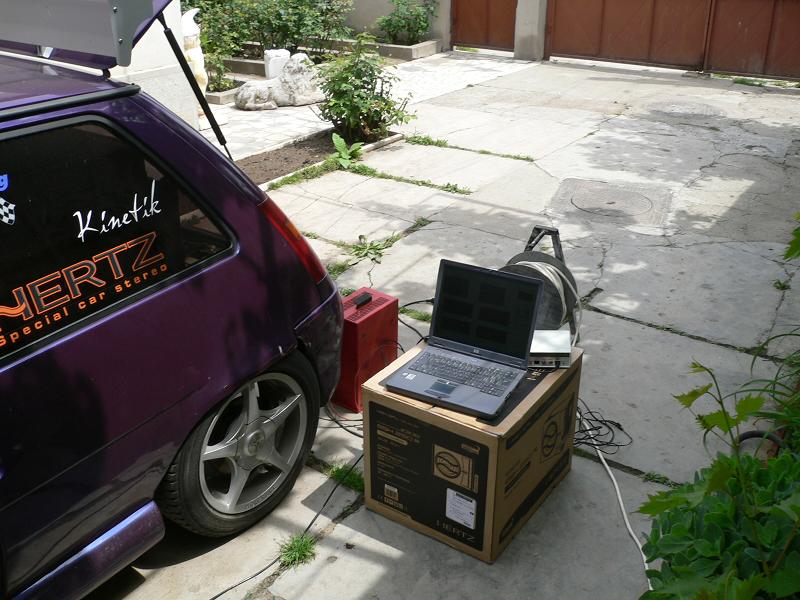Masina este un renault 5, cu dubla antifonare de la audiocomp + ranforsaj metalic. difuzorul este de 46cm (18") si este un Atomic Apocalypse de 2000wrms cu 16000w in burst. amplificatoarele erau 2 x SPL Dynamics de 3000w rms bucata. doua baterii Kinetik hc2000 de 2250Ah bucata, conectica 0 AVG de la Orion pt alimentare(doua trasee), intrerconectica de la Audison.