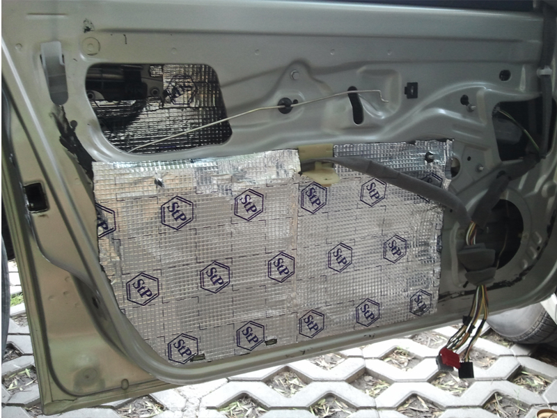 Am inceput sa insonorizez fata de usa(in interior)...Am pus insonorizant pe talba peste tot unde am ajuns. Chinu dracu`, m-am julit de sunt plin de zgrieturi dar am reusit zic eu pt. cineva care nu a mai facut asa ceva sa fac treaba buna. Chiar sunt multumit cum a iesit.
