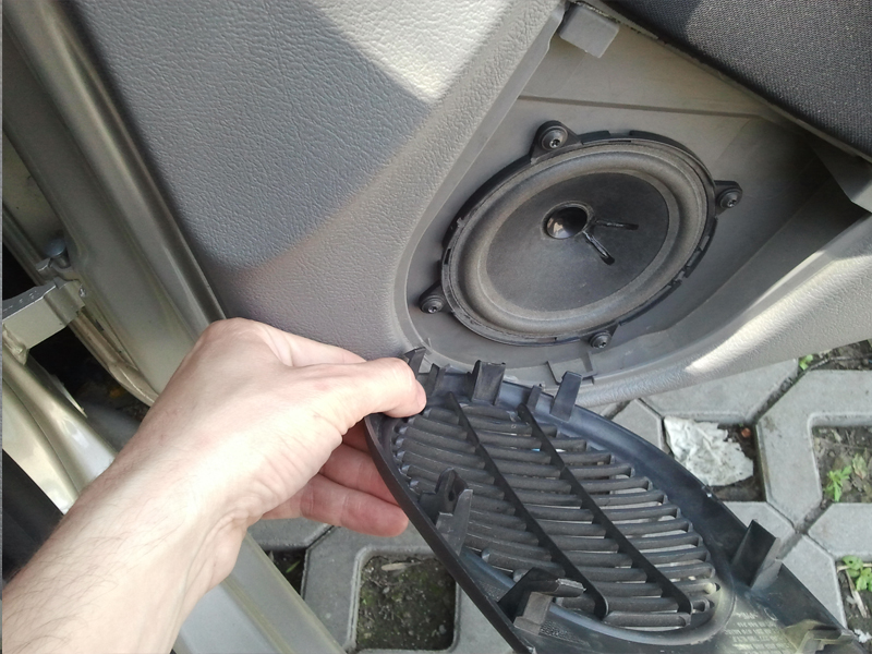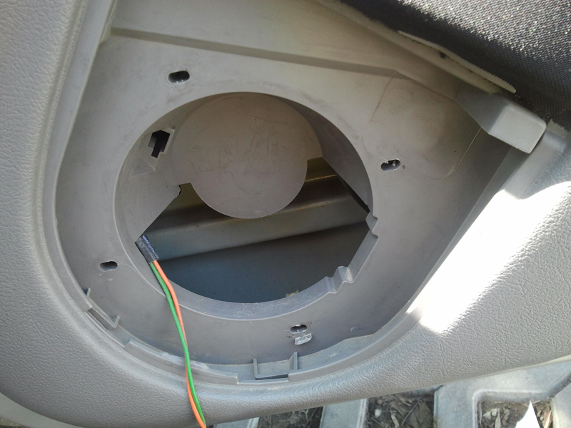 In primul rand inelul de mdf se prinde de tabla(daca este nevoie se suprapun mai multe inele) iar in fata de usa interioara(cea de plastic) se taie o gaura cu diametrul exterior al inelului astfel incat difuzorul va veni tot in aceeasi pozitie ca si acum(aici ma refer la adancime).
