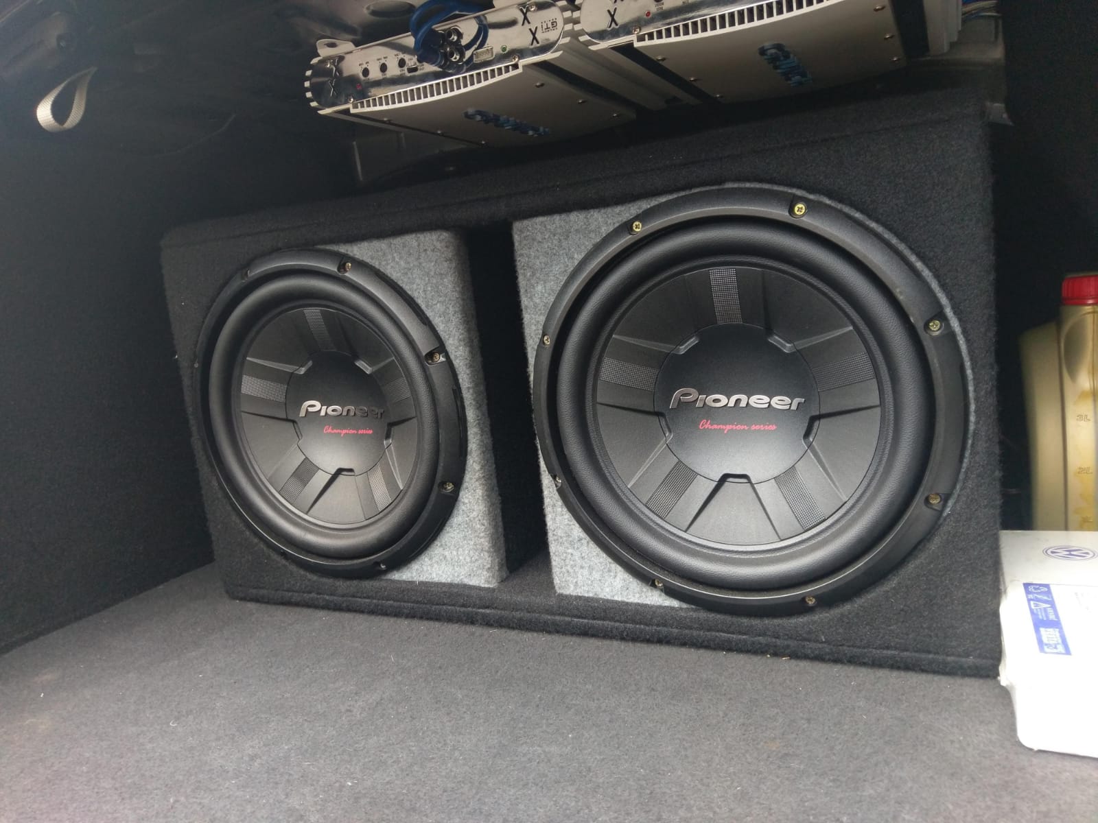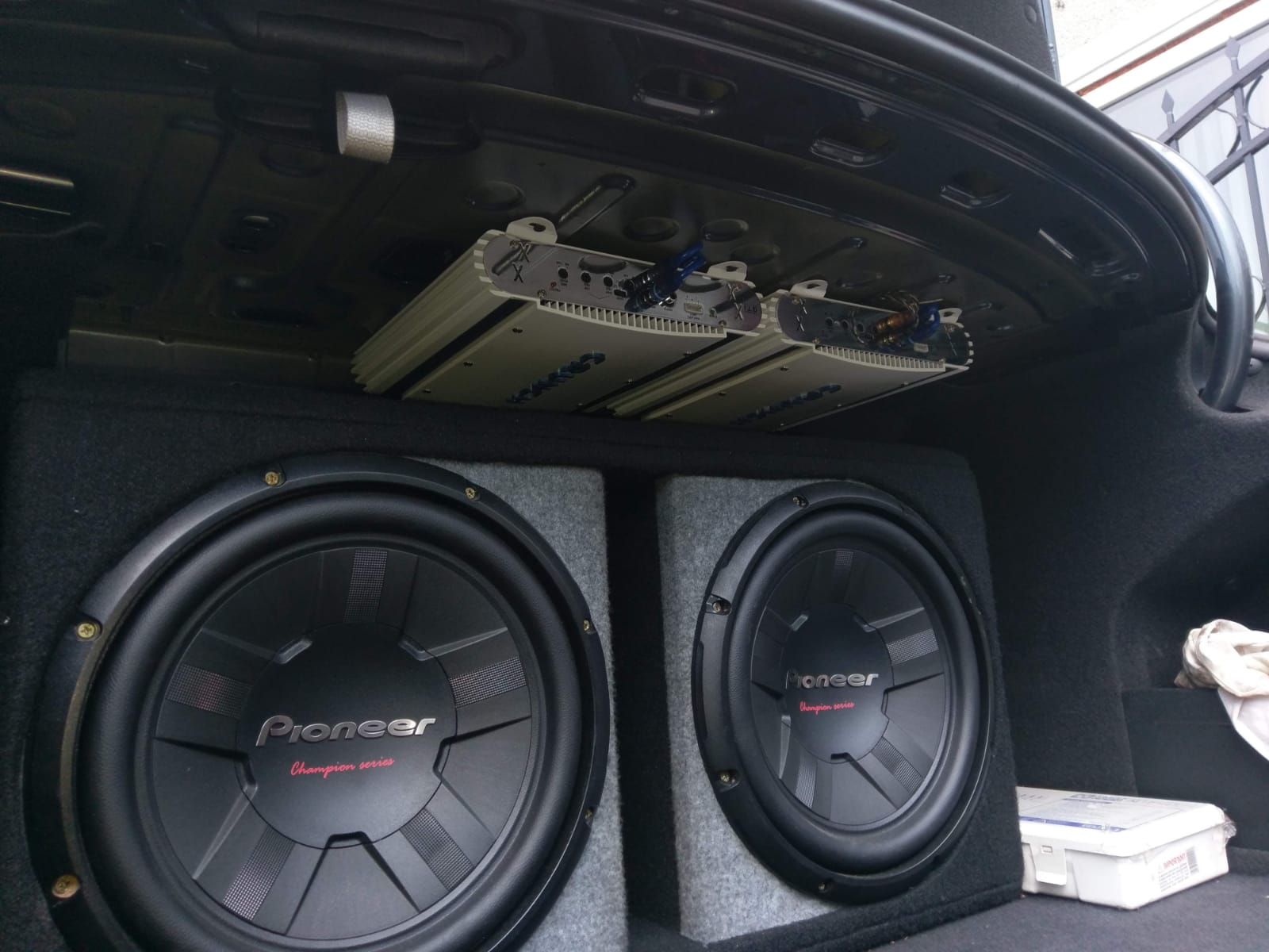 Modificarile actuale de pe masina, dpdv al sunetului : semnal preluat de la difuzoarele de pe spate cu adaptoare hi-low in doua statii Crunch (nu mai stiu exact modelul),semnalul dus intr-o cutie custom pe marimea portbagajului (facuta la Arad) cu doua difuzoare Pioneer.Totul montat si partial cumparat de la "baietii" de la be-loud acum cativa ani.