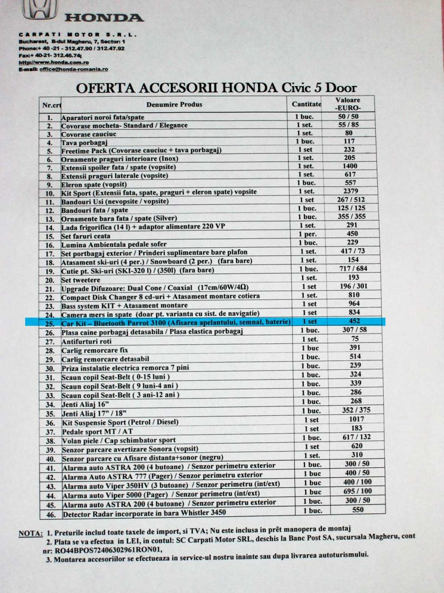 Revenind la preturi de "dealer", desi nu e frumos ce fac, uite, postez o poza cu o oferta de accesorii auto a unui dealer... vedeti cat e un carkit la ei si care e de fapt pretul pietei... eu m-am crucit cand am vazut.