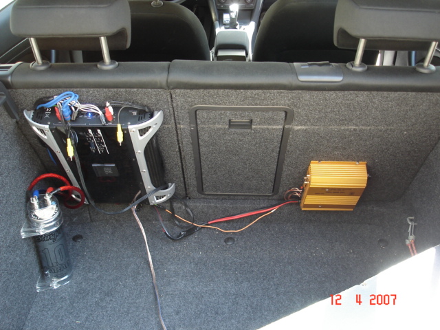 Cam asta este sistemul in faza actuala.Incerc sa strang bani pentru un player nou(ma gandesc la un Clarion DXZ778RUSB, ramane de vazut).De asemenea si cutia subwooferului trebuie schimbata deoarece arata groaznic, dar momentan isi face treaba foarte bine.