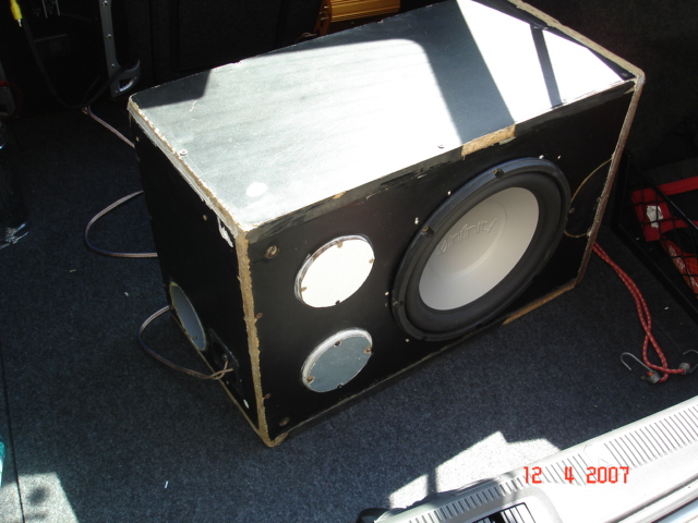 Cutia subwooferului are cativa ani.A gazduit mai multe difuzoare.Este asa "carpita" deoarece inainte nu stiam ce inseamna sa acordezi o incinta, puneam si eu niste tuburi acolo si vedeam cum suna Oricum, se aude bine cu ea,chiar si asa carpita.O voi schimba cu prima ocazie